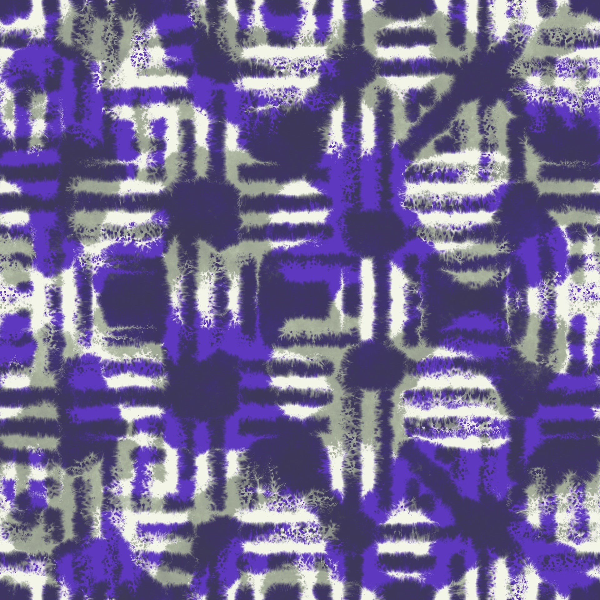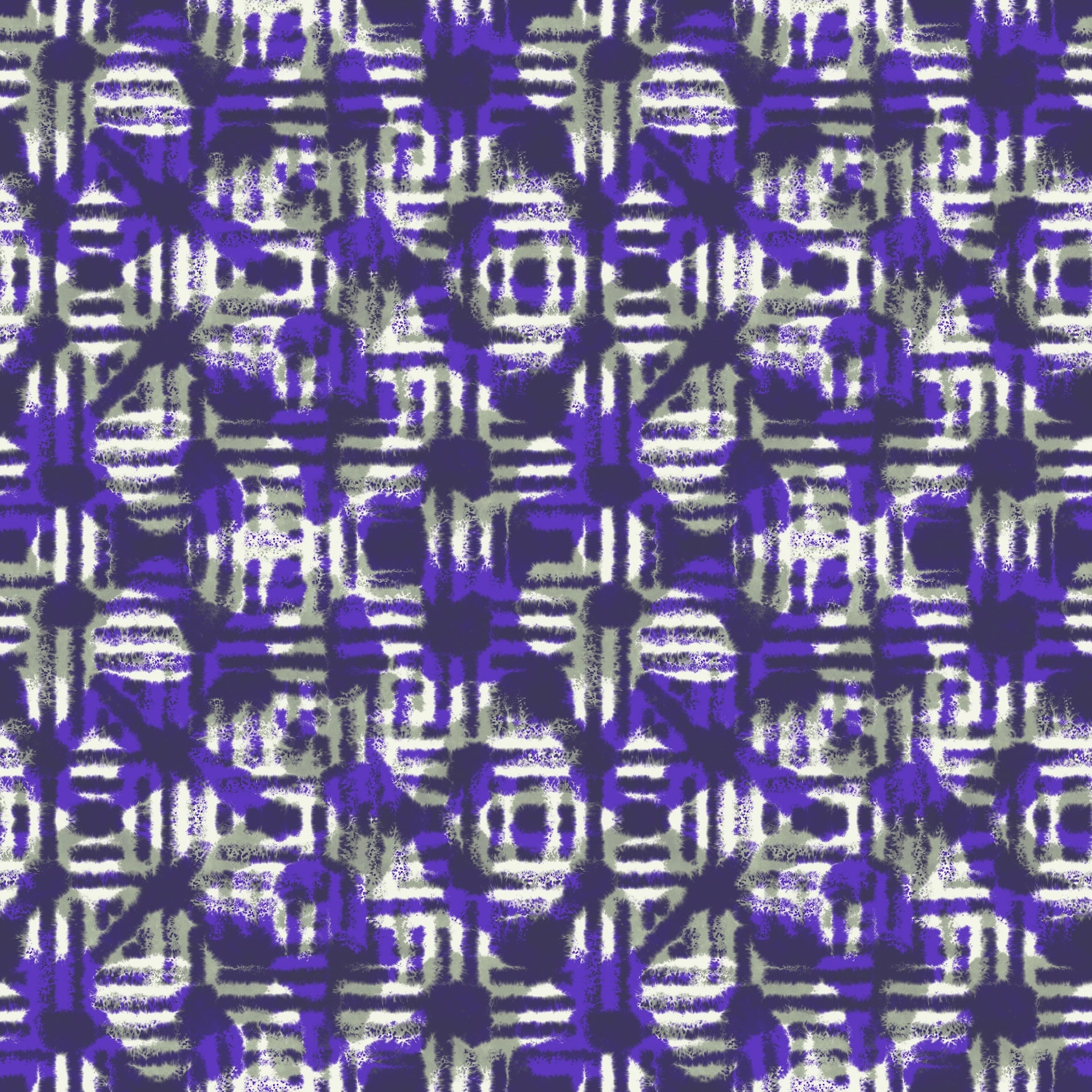 A captivating grid-inspired igeta motif presented in rich purples and deep violet hues. Gentle, diffused geometric shapes emerge in a balanced, symmetrical composition, reminiscent of soft watercolour blends and the fluid, organic movement of ink.